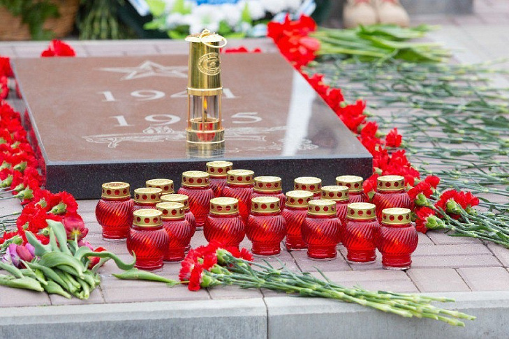Участники мероприятия почтили память погибших героев минутой молчания, возложили живые цветы и разместили на памятной плите мемориала 20 лампад в виде Красной звезды - символа Красной Армии, единения мира и освобождения от войны.