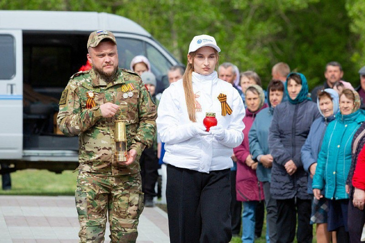 Частицу Вечного огня с единственного в нашей стране мемориального комплекса, посвящённого подвигу энергетиков — героев Великой Отечественной войны и трудового фронта из Тулы в составе автоколонны с символикой 80-летия Победы доставили в Тербунский район ветеран специальной военной операции, младший сержант батареи гаубичного артиллерийского дивизиона 57-го мотострелкового полка, электромонтер Усманского РЭС «Липецкэнерго», Алексей Жуликов и представитель Совета молодежи «Липецкэнерго» Полина Романцова.