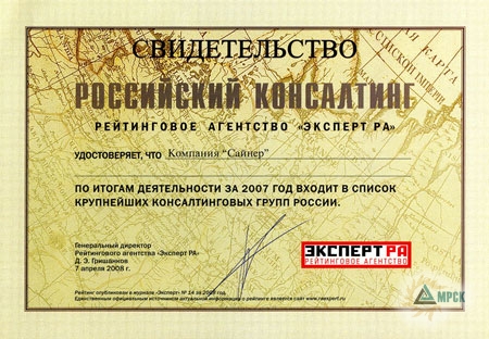 На 2008 год компания Сайнер ставит перед собой такие цели, как: