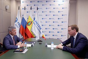 Губернатор Рязанской области Павел Малков и генеральный директор ПАО «Россети Центр» – управляющей организации ПАО «Россети Центр и Приволжье» Игорь Маковский на площадке 10-й профессиональной Коллегии Обществ провели рабочую встречу и вручили энергетикам региональные и корпоративные награды.