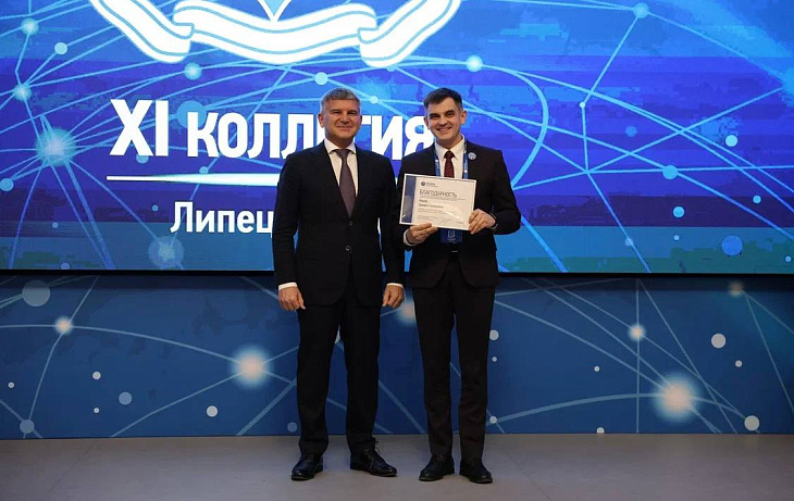 Губернатор Липецкой области Игорь Артамонов и генеральный директор «Россети Центр» и «Россети Центр и Приволжье» Игорь Маковский на площадке 11-й профессиональной Коллегии Обществ вручили энергетикам региональные и корпоративные награды.