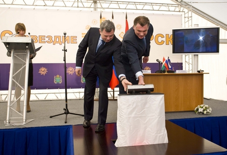 Генеральный директор ОАО «Холдинг МРСК» Николай Швец и губернатор Калужской области Анатолий Артамонов подтвердили свои намерения плодотворно сотрудничать в деле создания благоприятного инвестиционного климата в регионе. Подписание Соглашения состоялось в ходе церемонии торжественного открытия подстанции 220 кВ «Созвездие» — одного из приоритетных инвестиционных проектов распределительного сетевого комплекса в Калужской области.