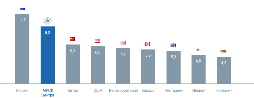 Уровень потерь ПАО «МРСК Центра» за 2014 год составил 9,17% от отпуска в сеть. Это ниже показателя в целом по России (11,6%), но выше показателей ведущих стран мира.